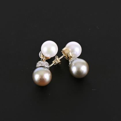 Ohrsteckerpaar mit Zuchperlen und Diamanten.