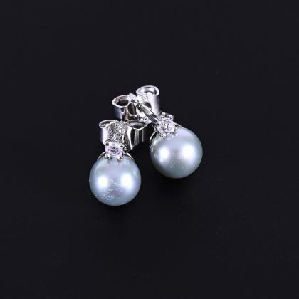 Schlaufenbrisuren mit Zuchtperlen und je 2 kleinen Diamanten. Steckmechanik