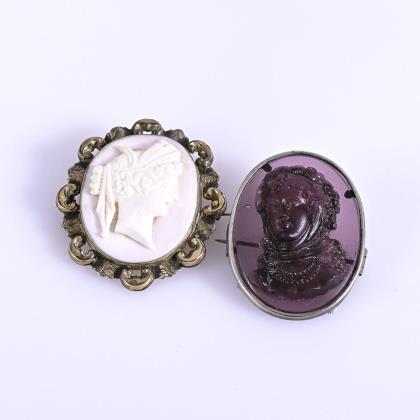 2 Broschen mit Markasiten.