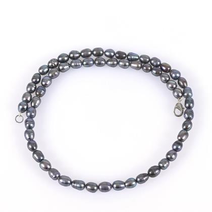 Schnürketten mit kleinen Zuchtperlen, an Zierschließe mit schwarzen Einlagen
