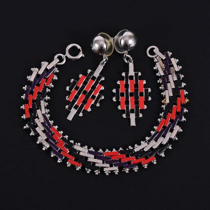 Armband und Ohrsteckerpaar. JACOB BENGEL, Pforzheim 1931.