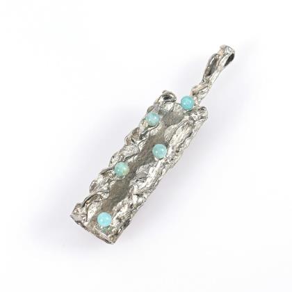 Großer, strukturierter Anhänger mit 5 kleinen Steinkugeln. Starre Öse