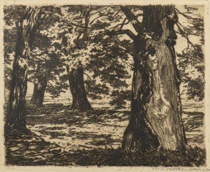 BRÖKER, Bernhard (1883 Münster - 1969 Münster). Landschaft mit Bäumen.