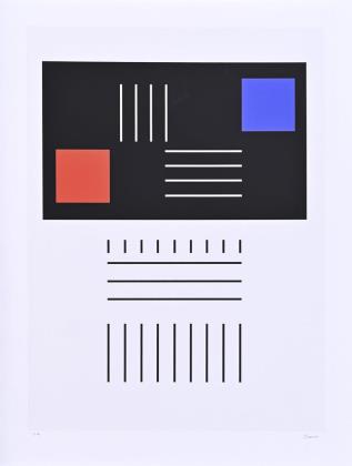 Komposition in Blau, Blatt: 60 x 60 cm, Exemplar: 9/100, [19]83, Ecke unten rechts bestoßen | Komposition in Orange, Blatt: 57 x 57 cm, Künstlerexemplar - "e.a.", [19]85, Oberfläche mit 3 kleinen weißen Flecken
