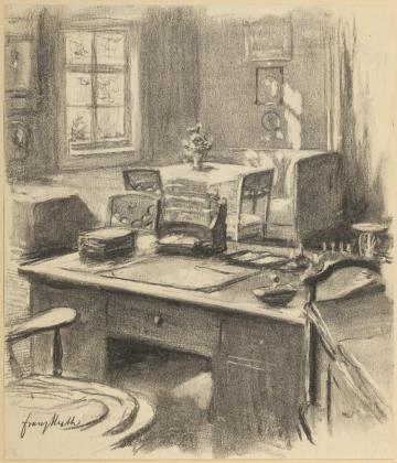 HUTH, Franz (1876 Pößneck - 1970 Weimar). Ausschnitt eines Arbeitszimmers.
