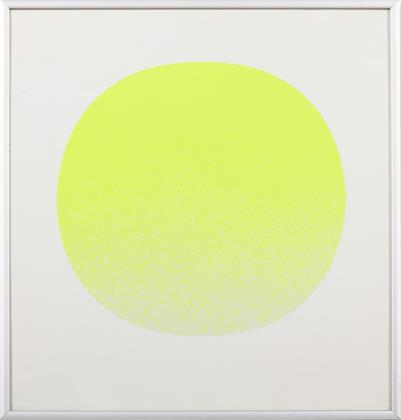 Neongelber Kreis auf weißem Grund