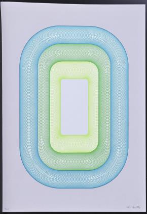 Undeutlich signiert: Konkretes Werk in Neongrün und Schwarz.