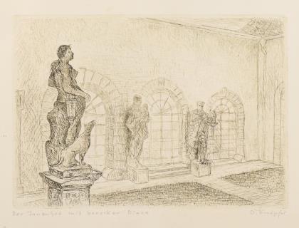 KNÖPFER, Otto (1911 Arnstadt - 1993 Erfurt). "Der Innenhof mit barocker Diana".