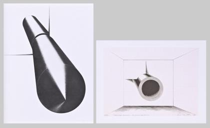 "Raumzeichnung - Bildkonzeption", Blatt: 42,5 x 57 cm, Exemplar: 57/130, [19]71 | Ohne Titel, Blatt: 65 x 50 cm, Exemplar: 51/130, [19]70