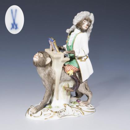 Figur der Affenkapelle: Affe als Klavierspieler. Meissen.