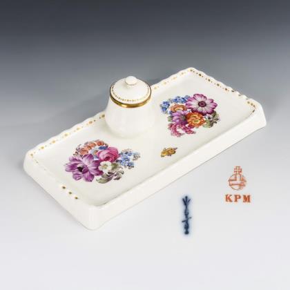 Schreibzeug mit Blumenmalerei. KPM Berlin.
