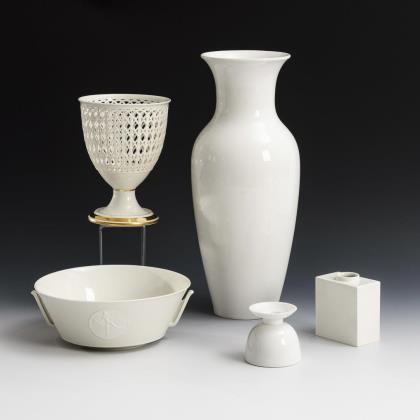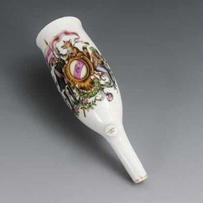 Modell von Jakob Ungerer 1881. Farbig bemalt, gold staffiert, Spitzenbesatz (originale Stoffspitzen werden in die Glasur getaucht, die beim Brand verglühen). Unglasierter Boden, Ritzmarken, Pressmarken, Malermarken, Schwertermarken