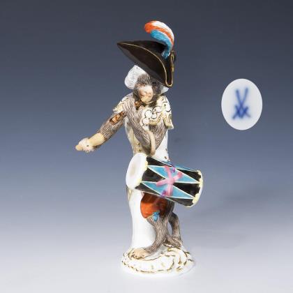 Figur der Affenkapelle: Affe als Trommler. Meissen.