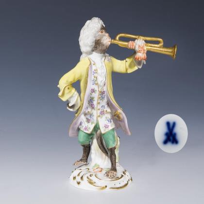 Figur der Affenkapelle: Affe als Trompeter. Meissen.