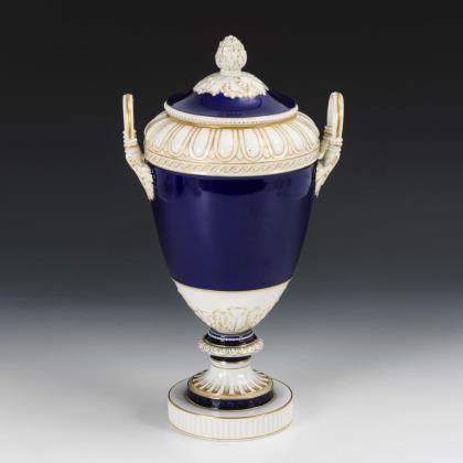 Deckelvase mit blauem Fond. KPM Berlin.