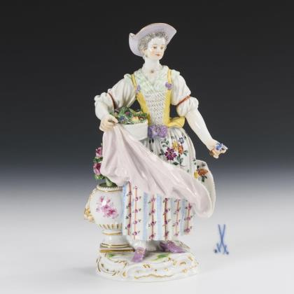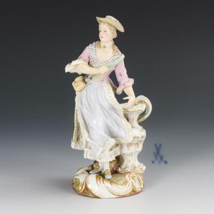 Modell von Johann Joachim Kaendler und Friedrich Elias Meyer 1755-1760. Aus einer Serie von 16 Figuren. Farbig bemalt, gold staffiert. Ritzmarke, Pressmarke, Malermarke, Schwertermarke