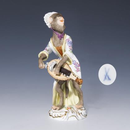Figur der Affenkapelle: Affe mit Drehleier. Meissen.