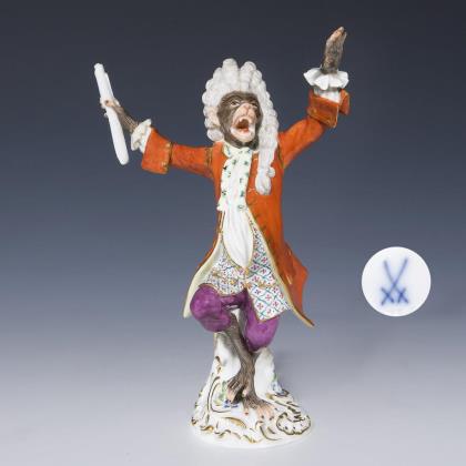 Figur der Affenkapelle: Affe als Kapellmeister. Meissen.