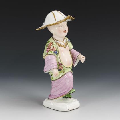 Modell von Peter Reinicke 1753-1754. Aus einer Serie von 34 Figuren. Farbig bemalt, gold staffiert. Ritzmarke, Pressmarke, Malermarke, Schwertermarke