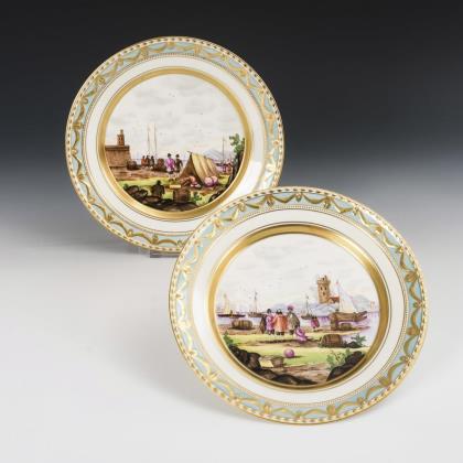 2 Teller mit Kauffahrteimalerei. KPM Berlin.