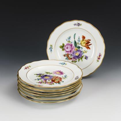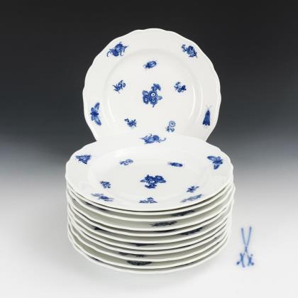 12 Teller mit Blaumalerei. Meissen.