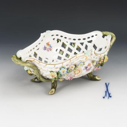 Zwiebelmuster-Druchbruchschale, -Korb und -Cachepot. Meissen.