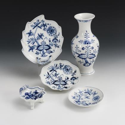 5 Teile Zwiebelmuster-Porzellan. Meissen.