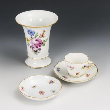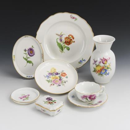37 Teile eines Service mit Streublümchenmalerei. Meissen.