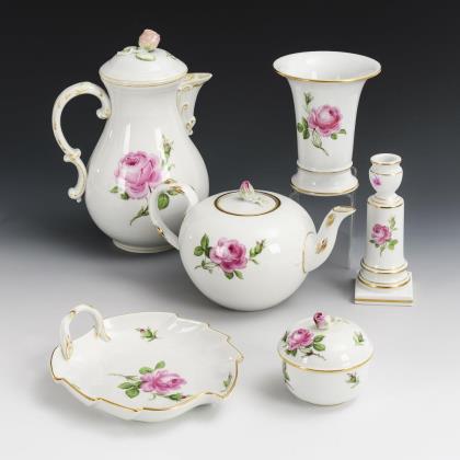 5-teiliges Kernstück "Rote Rose". Meissen.