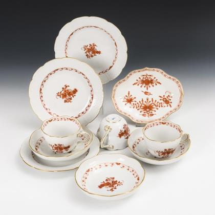 9x Porzellan mit indianischem Dekor. Meissen.