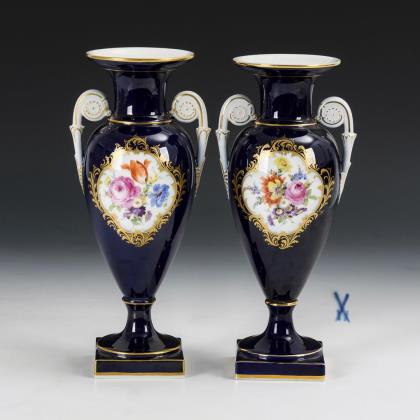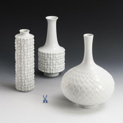 3 weiße Vasen. Meissen.