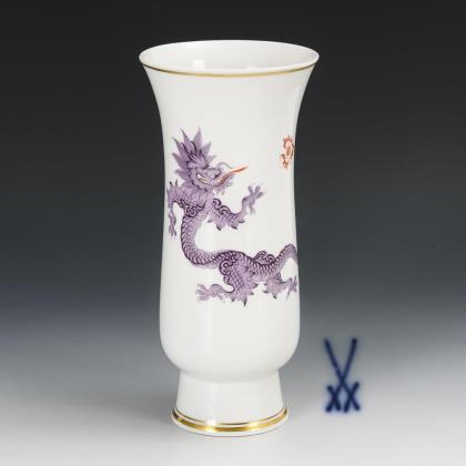 Hohe Vase mit konischem Fuß. Mit violetter Drachenmalerei