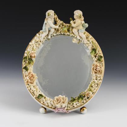 Form "Altozier". Im Spiegel jeweils die Darstellung von Obst im Stil der Weichmalerei