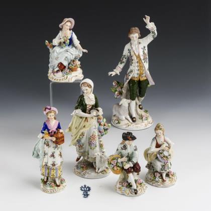 6 Rokokofiguren. Sitzendorf.