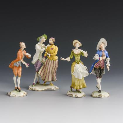 Rokokopaar, Rokokodame, Kavalier mit Rose und Kavalier mit Hut