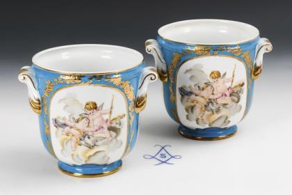 2 Cachepots mit Puttenmalerei.