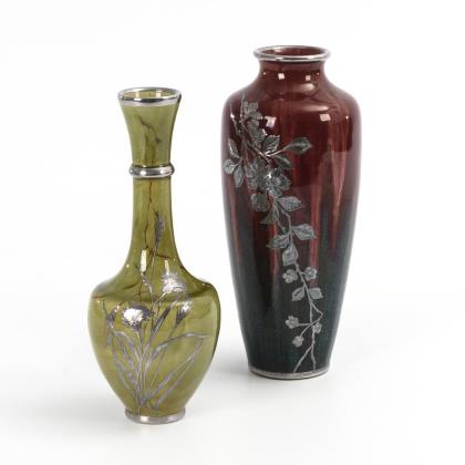 2 Jugendstil-Vasen mit Silberauflagen