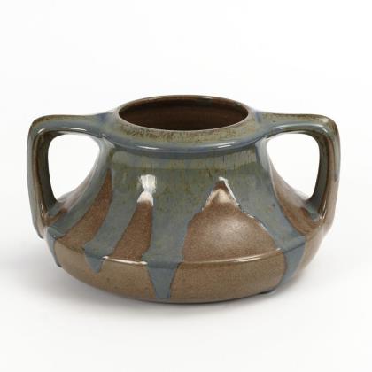 Vase mit flachem Korpus und 2 angewinkelten Henkeln