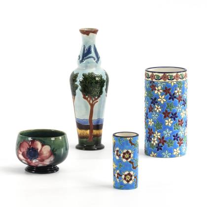 4 Jugendstil-Vasen mit Blumendekor
