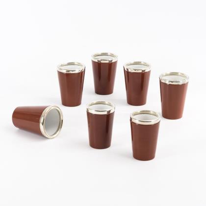 4 seltene französische Kunstkeramik-Tassen mit Untertassen. Gilbert MÉTÉNIER (1876-nach 1940) / Grès d’Art Méténier, Gannat.