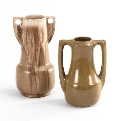 2 braune Jugendstil-Henkelvasen