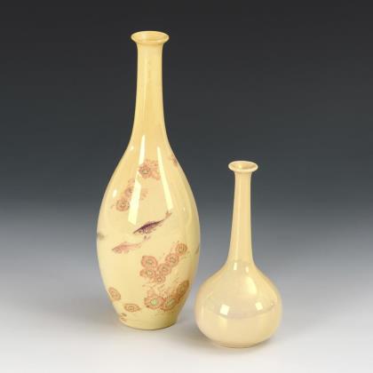 Keulenform mit Fischen und Blumen (H 24 cm), Tropfenform (H 14,5 cm)