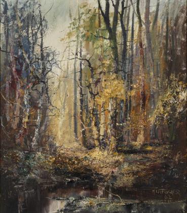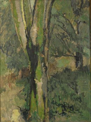 Undeutlich signiert: Waldstück.