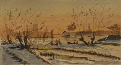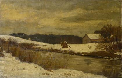 RAU, C.. Ruhige Winterlandschaft mit Wasser.