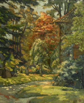 CHRISTIANSEN, Hans (1866 Flensburg – 1945 Wiesbaden). Herbstliche Parklandschaft.