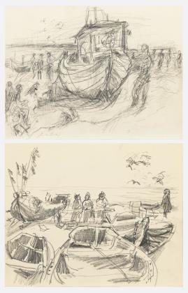 MUTTERLOSE, Heinz (1927 Schkeuditz - 1995 Schkeuditz). 2 Zeichnungen mit Fischern und Booten.