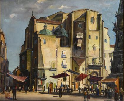PETERSEN-SVENDSBERG, Knud (1889 - 1971). Sonnige Stadtansicht.