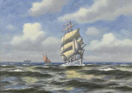 KONGSHAMMER, Jens (1884 Norre Hyllinge - 1974 Kopenhagen). Schiffe auf dem Meer.