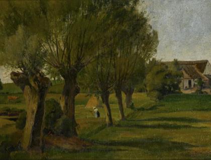 DAHL, Theodor Bernard (1886 Fiskebaek - 1971). Landschaft mit Kopfweiden und Bauernhof.