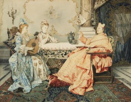 SIGNORINI, Giuseppe (1857 Rom - 1932 Rom). Zwei junge Damen im Salon des Kardinals.